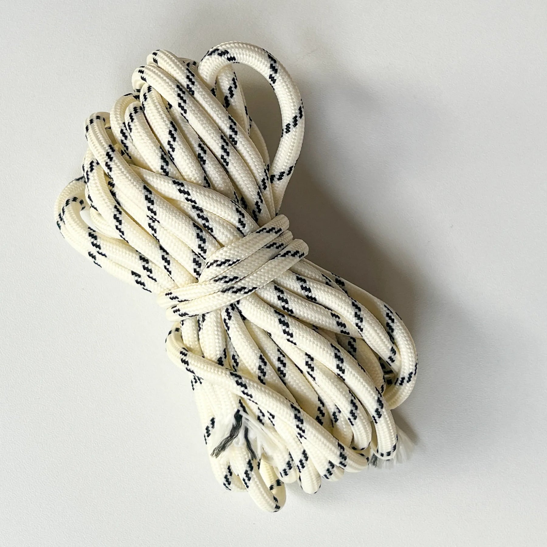 Grey and white mixed braided paracord utility rope, durable and flexible cord for hands-free phone lanyards.